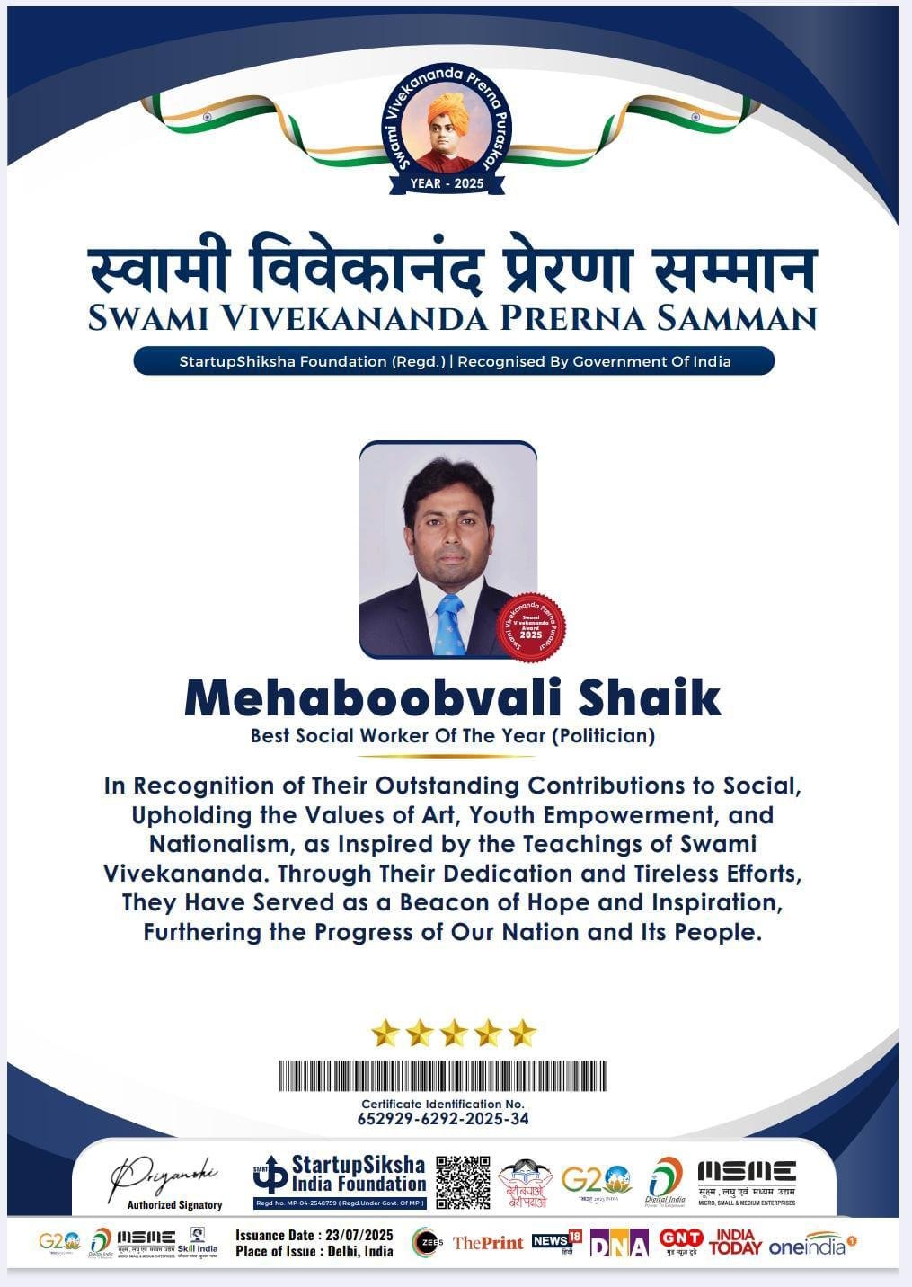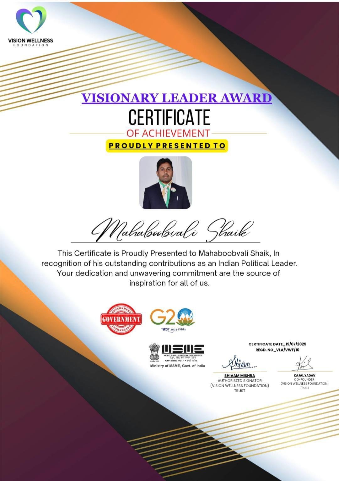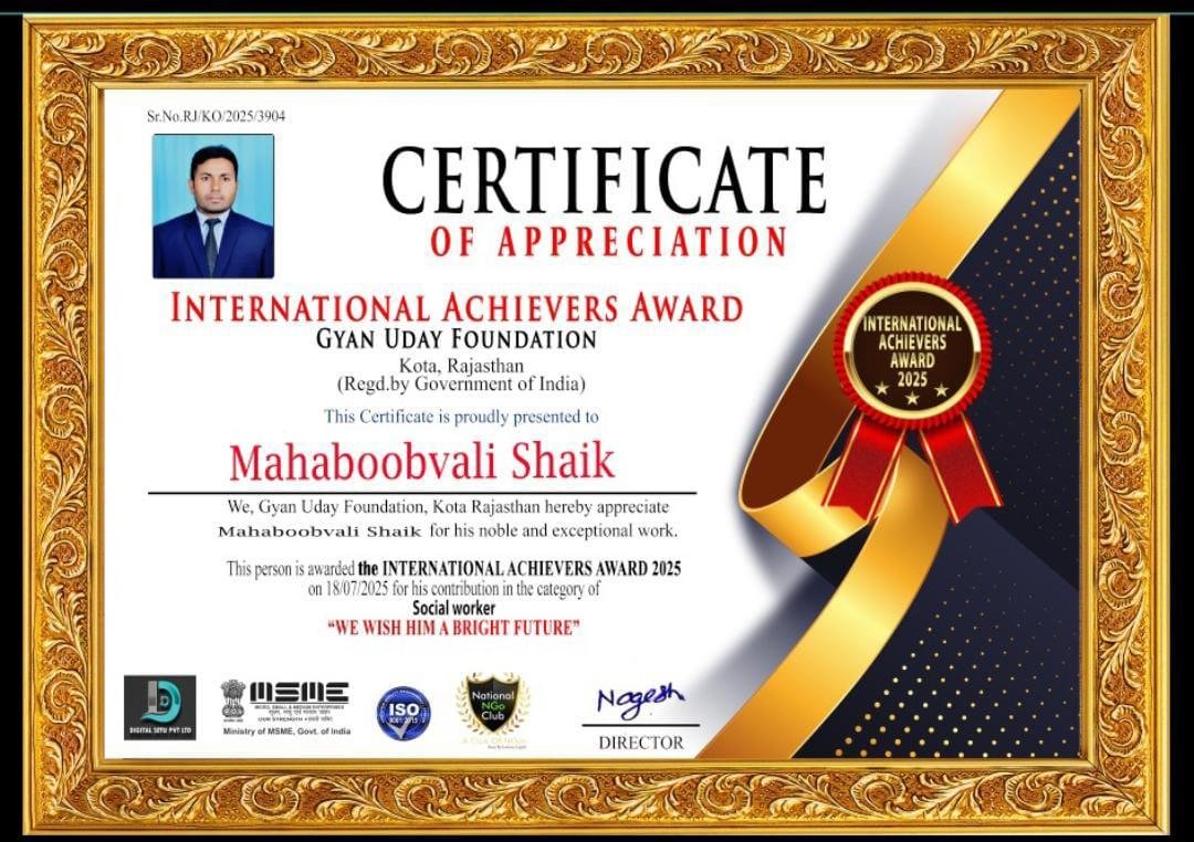 “My mission is to educate, empower, and elevate humanity through compassion and knowledge. Every child deserves a chance to shine — and I dedicate my life to ensuring education reaches every heart that dreams.” — Dr. Mahaboob Vali Shaik