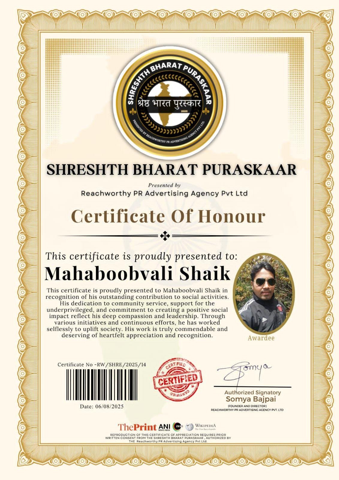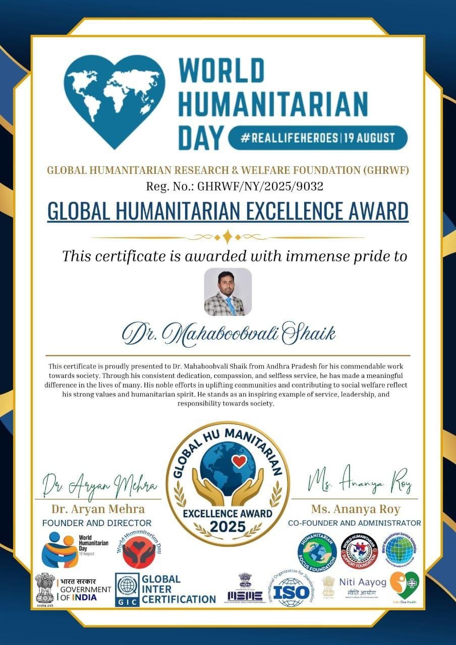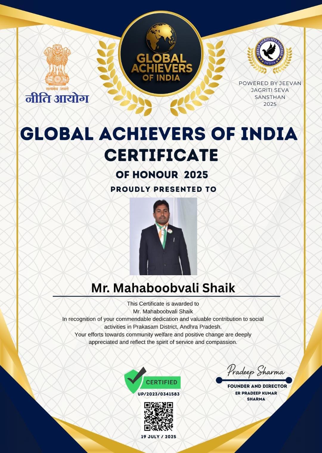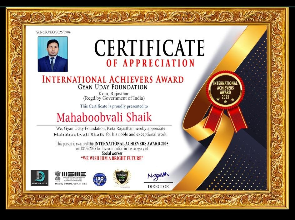“My mission is to educate, empower, and elevate humanity through compassion and knowledge. Every child deserves a chance to shine — and I dedicate my life to ensuring education reaches every heart that dreams.” — Dr. Mahaboob Vali Shaik