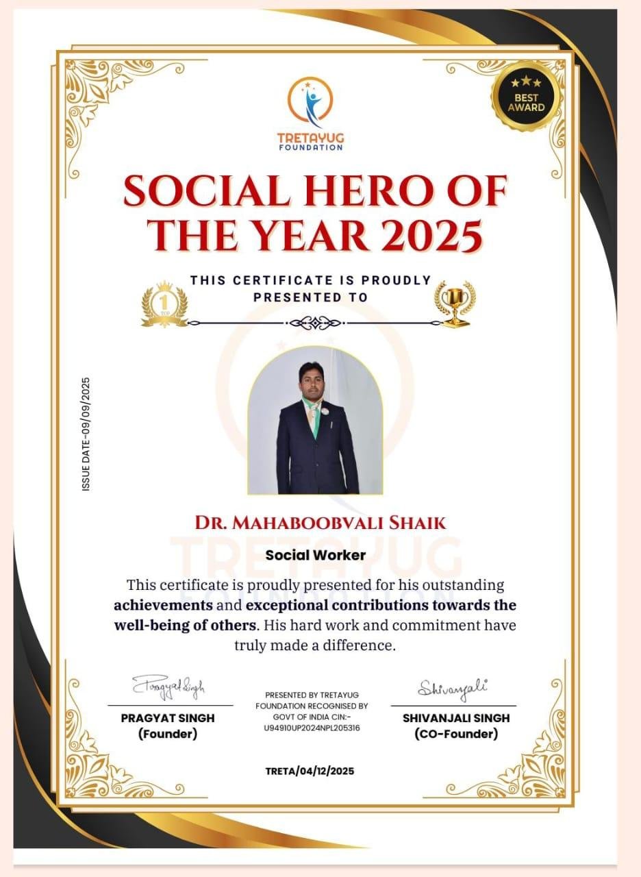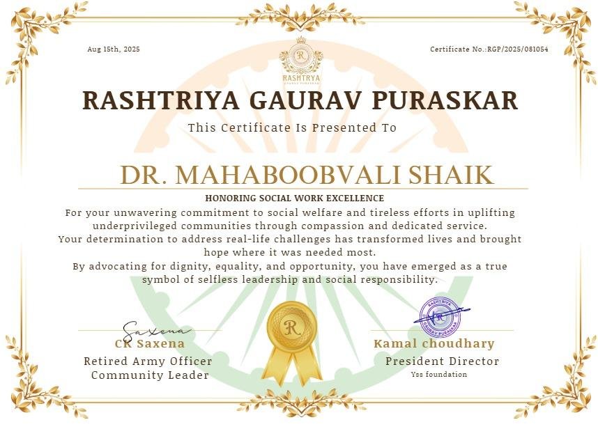 The gallery of Dr. Mahaboob Vali Shaik, a distinguished social worker and national award recipient, showcases his lifelong dedication to humanity.